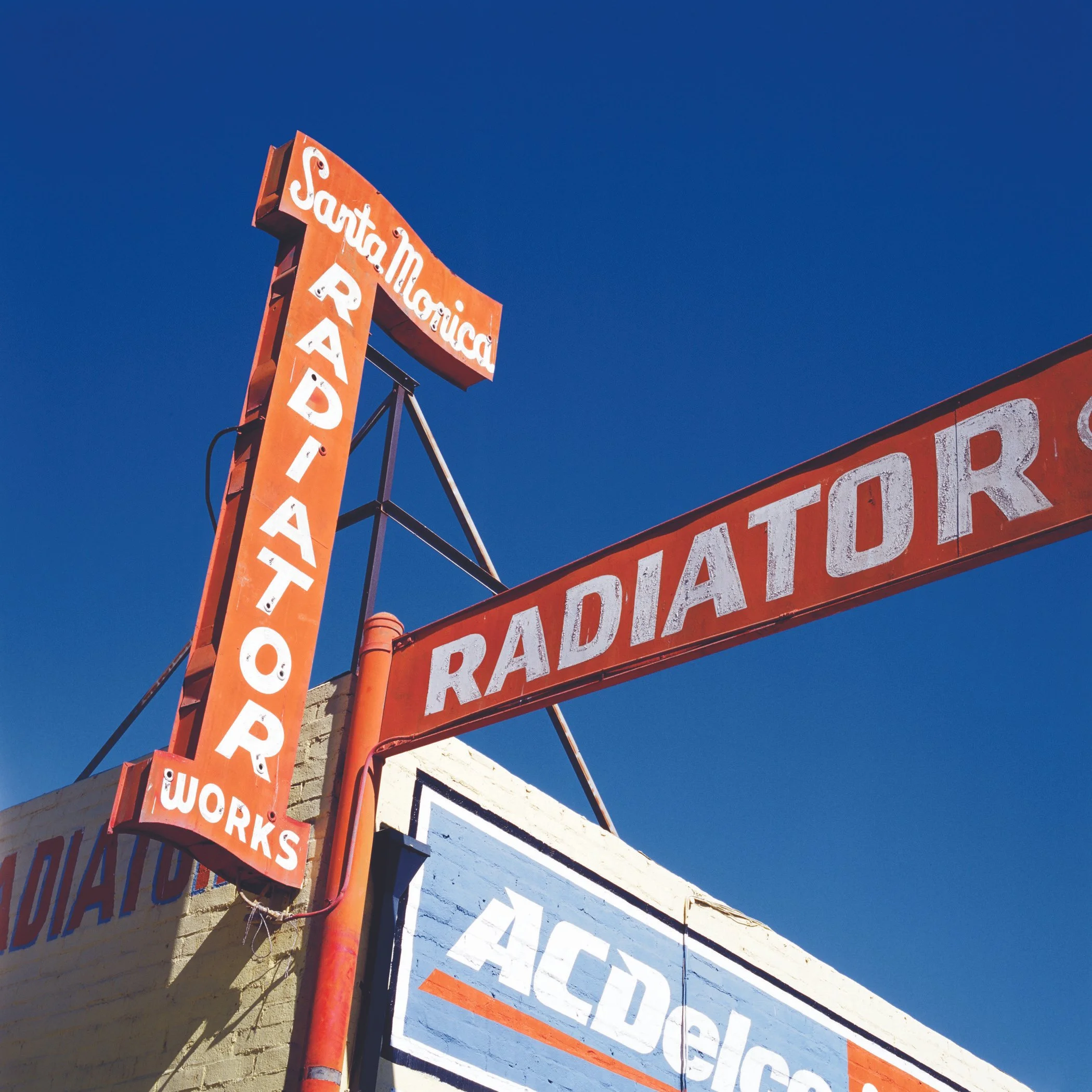 The whimsy of the signs themselves appealed to Alex Mebane. “The Santa Monica Fence Company’s sign was literally a piece of chain link fence. He grins: “So cute.” Santa Monica Radiator shop has been in business since the early 1900s, he tells me. The sign changed as the times did: “Welding moved from fixing engines to sculpting metal. They stretched that old radiator sign to look like an airplane wing!”
